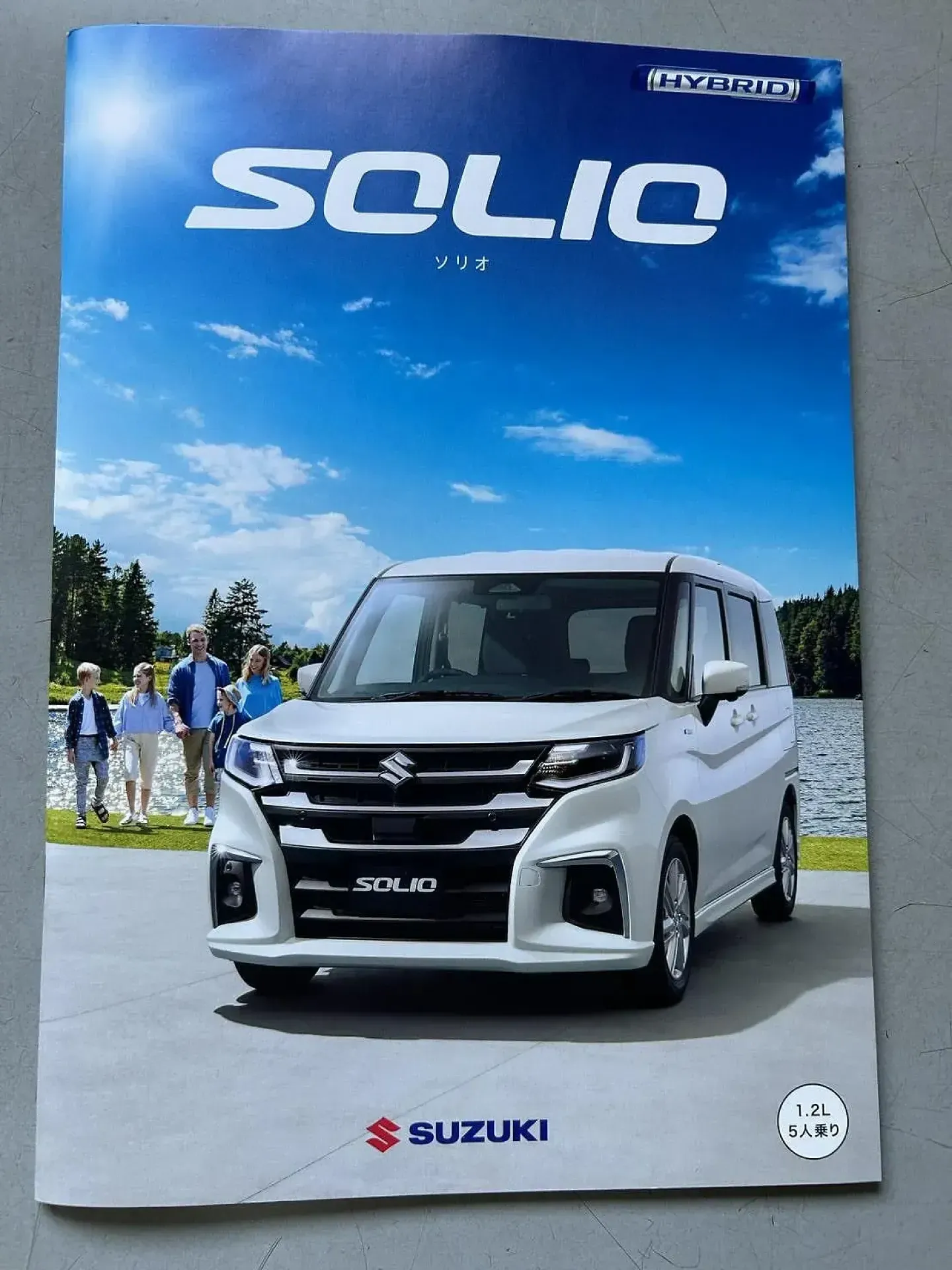 青空の下、湖畔で家族が楽しそうに歩いている姿とともに、SOLIOが映るこの一枚。