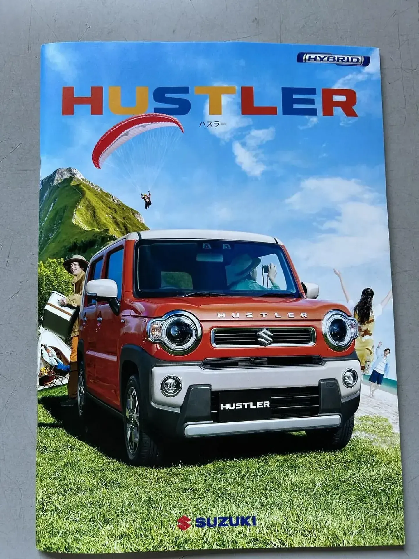 青空の下、芝生の上に停まるHUSTLERが目を引きます。