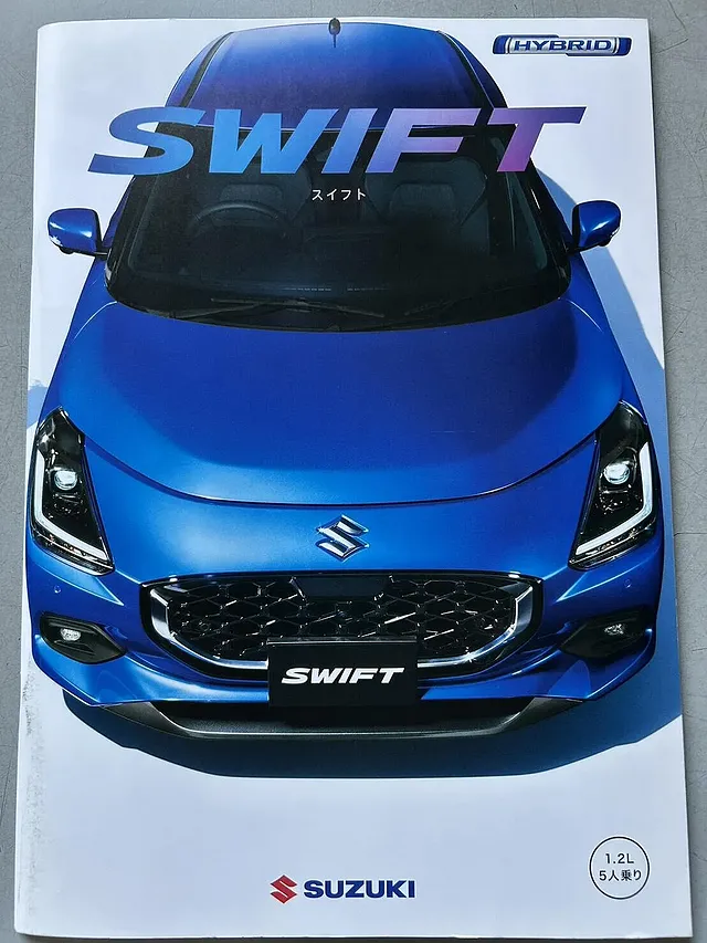 ショールームのカウンターに並ぶパンフレットの中で、ひとき目を引くSWIFTの表紙。鮮やかなブルーが陽射しに映えて、思わず手に取る方も多いんです。実際、ご来店いただいたお客様からは「この色って写真通りなんですか?」とよくご質問をいただきます。